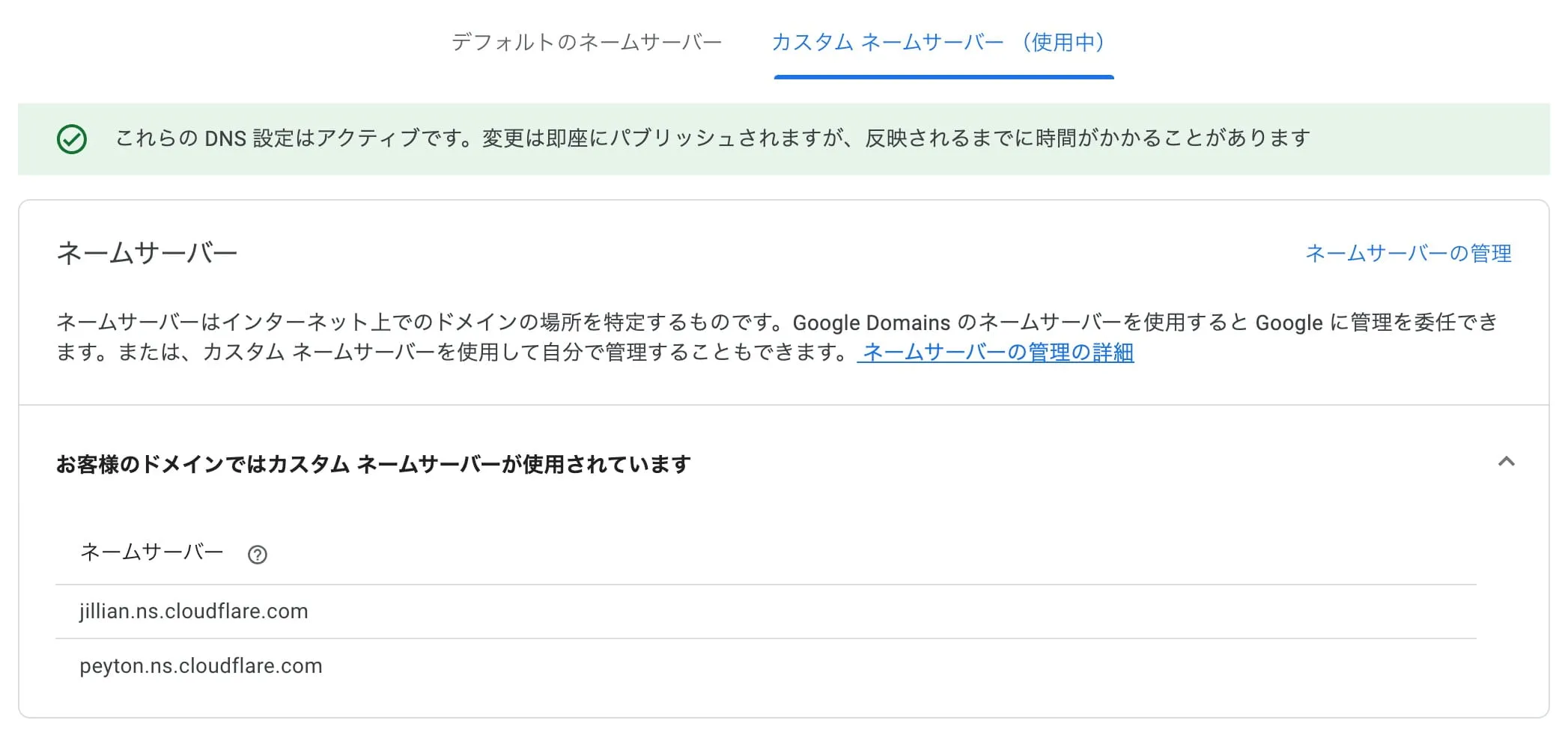「移管前」までの作業によって、ネームサーバーを Google から Cloudflare に変更するので、 「Google からドメインを買って、Cloudflare で名前解決している」状態になります。