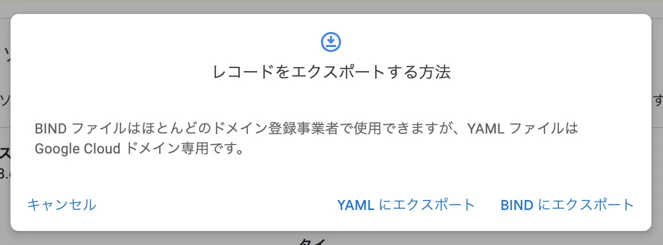 お使いのドメインを Cloudflare に追加します パートでレコードを自動で読み込んでくれましたが、私のケースでも漏れがありました。 Google Domains 側で bind ファイル (初めて知った) をエクスポートして、 Cloudflare 側で読み込ませればバッチリ。