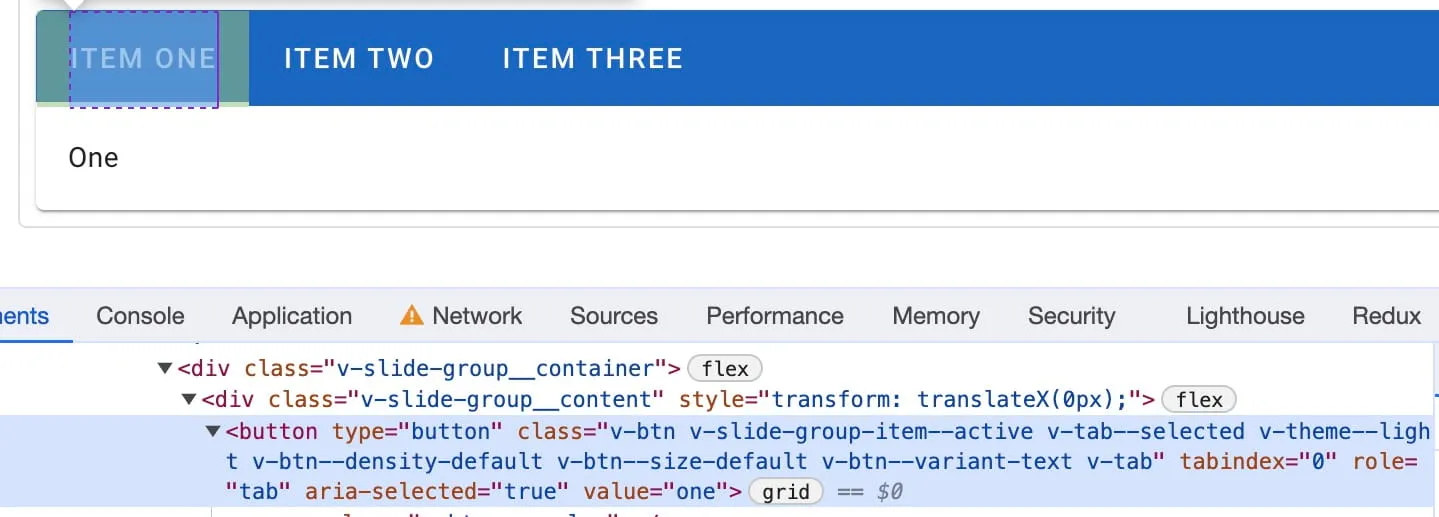 Vuetify3 の Tabs では、role="tab" 要素に id 属性を設定していない?